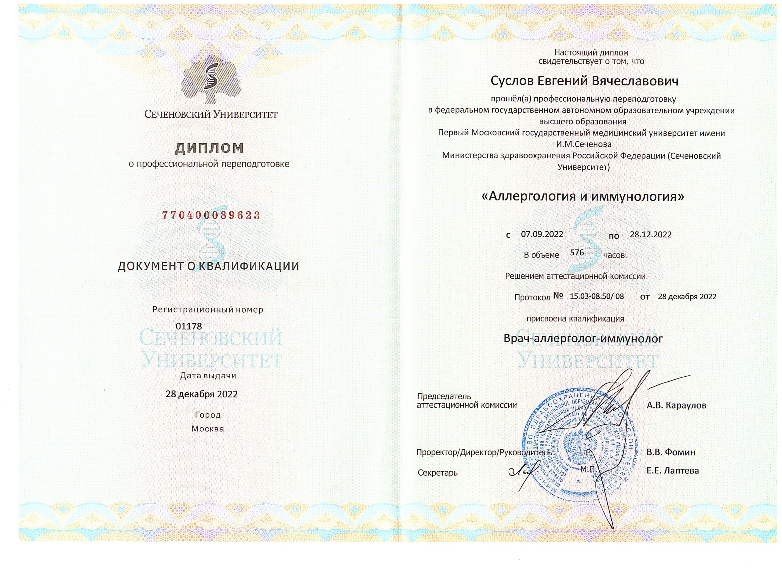 2015г. — присвоена квалификация – массажист широкого профиля.