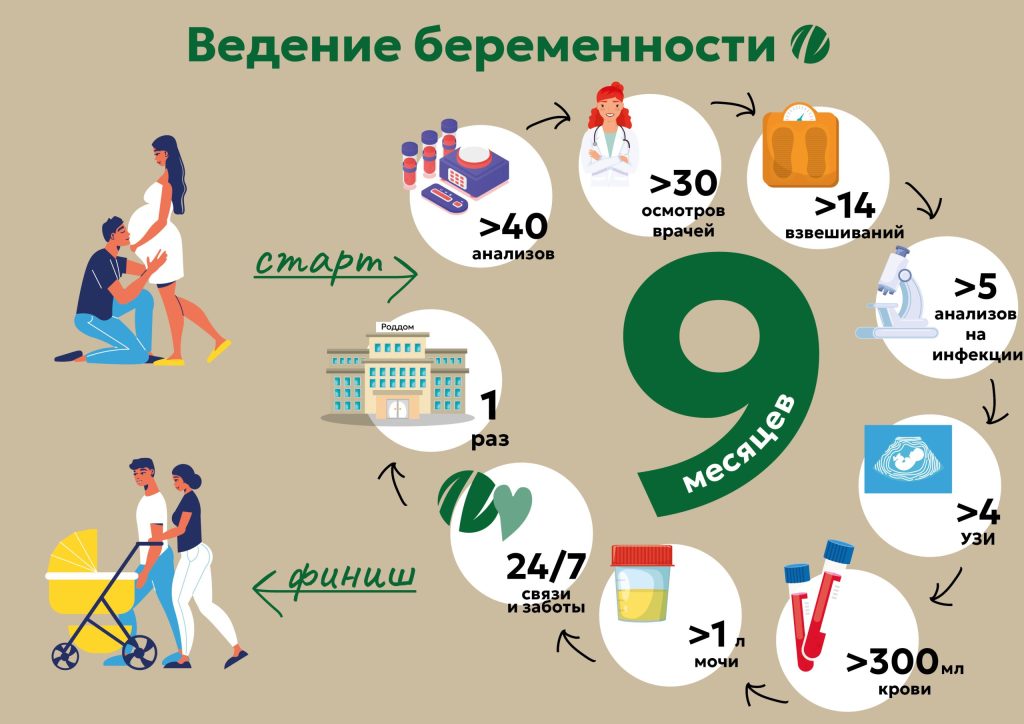 В разделе отмечены только самые главные медицинские исследования, необходимые при здоровом протекании беременности. Все подробные рекомендации или ответы на вопросы можно получить на приеме, во время планового посещения или записавшись на визит по собственному желанию вне графика.